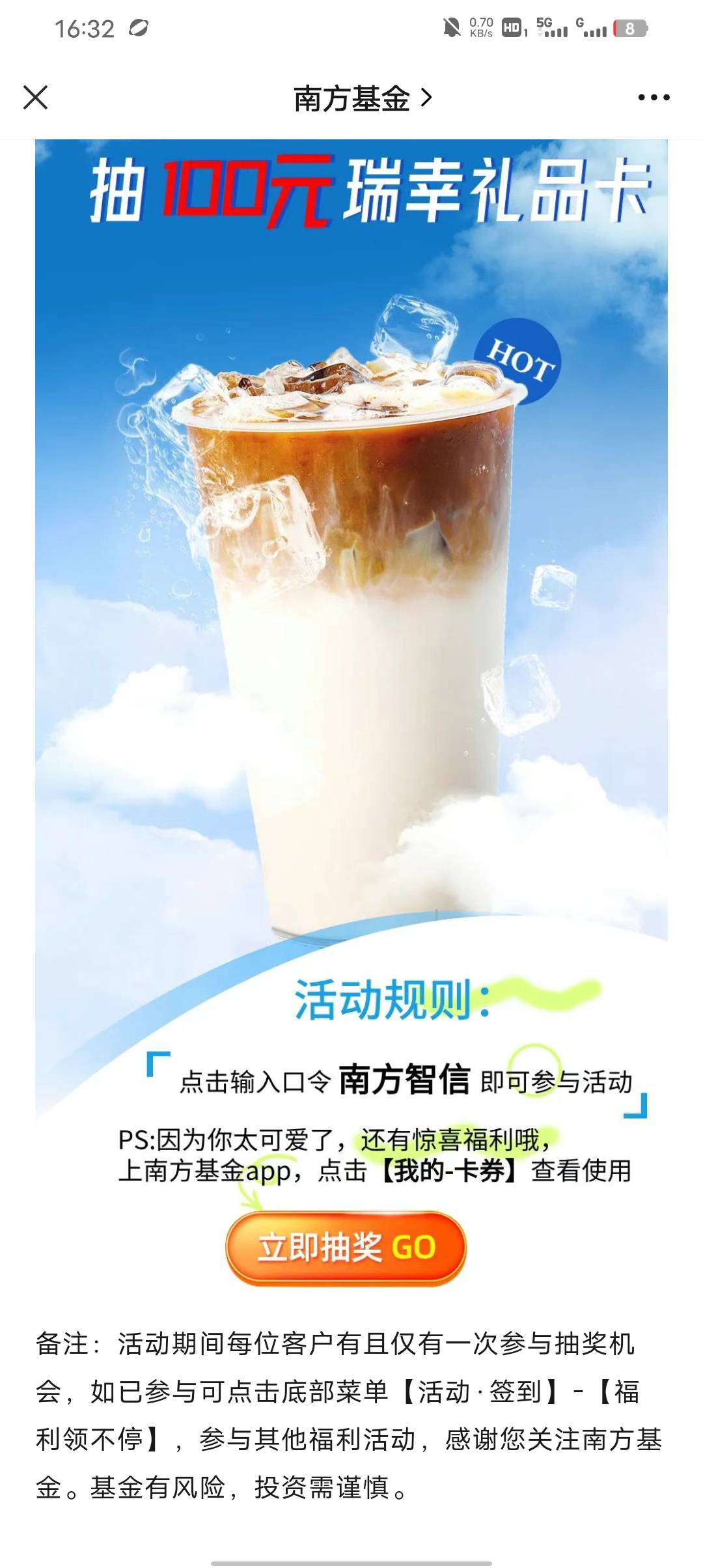 首发,南方基金公众号,0.38大毛警告,快冲,老哥们