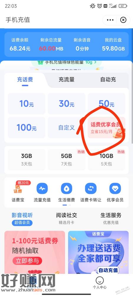 位置:翼支付-充值-再点下图,开季包25,每月5话费券加10还款券