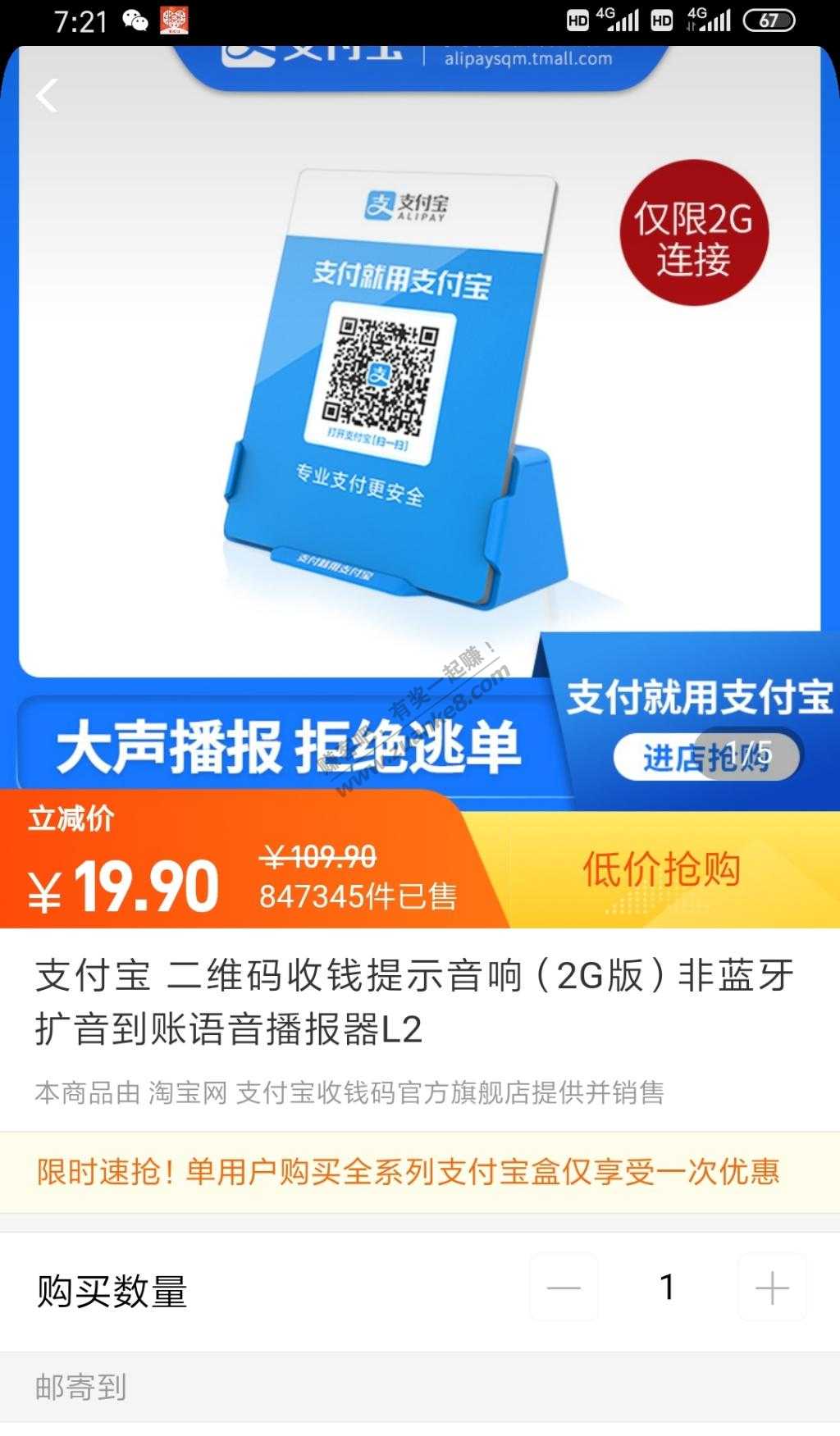 摆摊神器!支付宝2g网播报音箱好价19.9