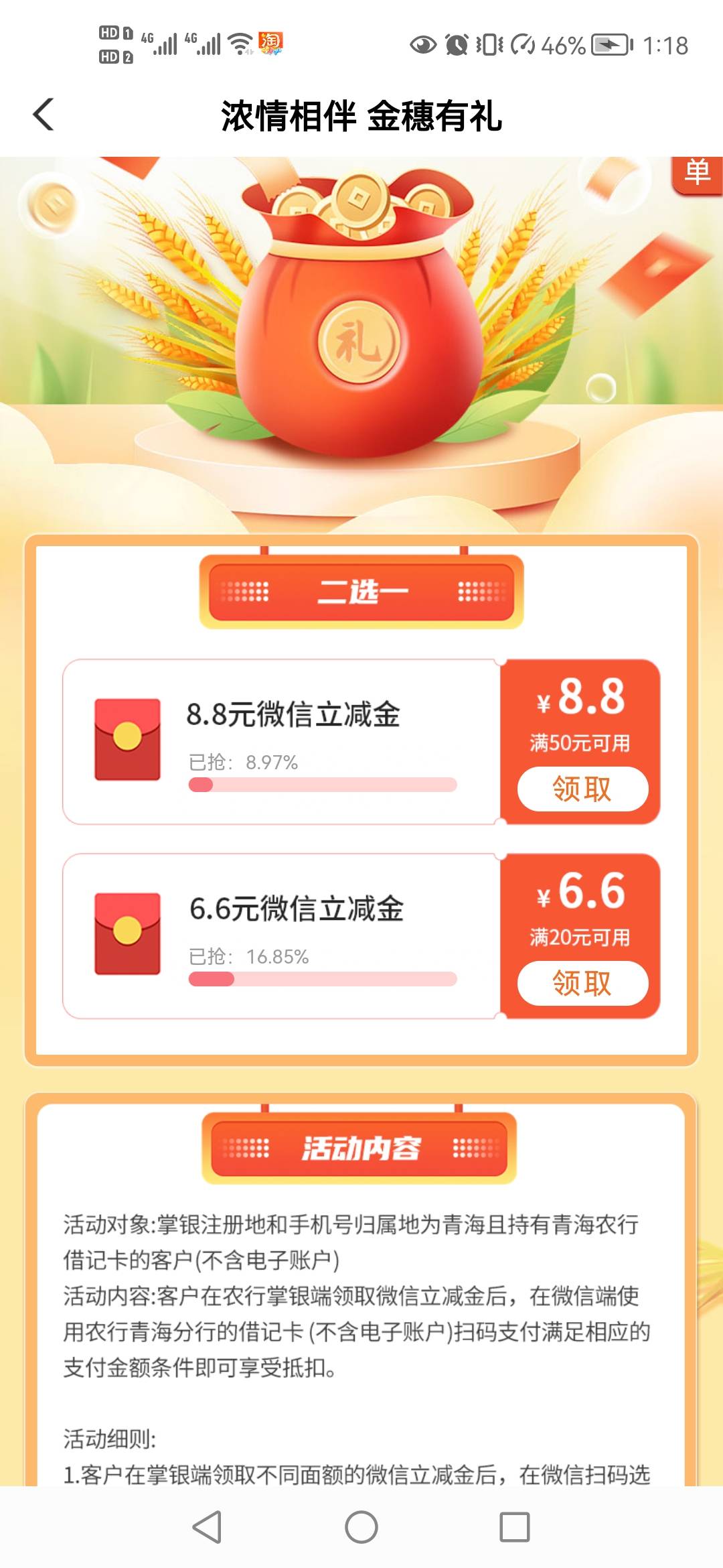青海城市专区 金穗有礼 显示限制手机号但我可领,不知道是不是大清 自己看