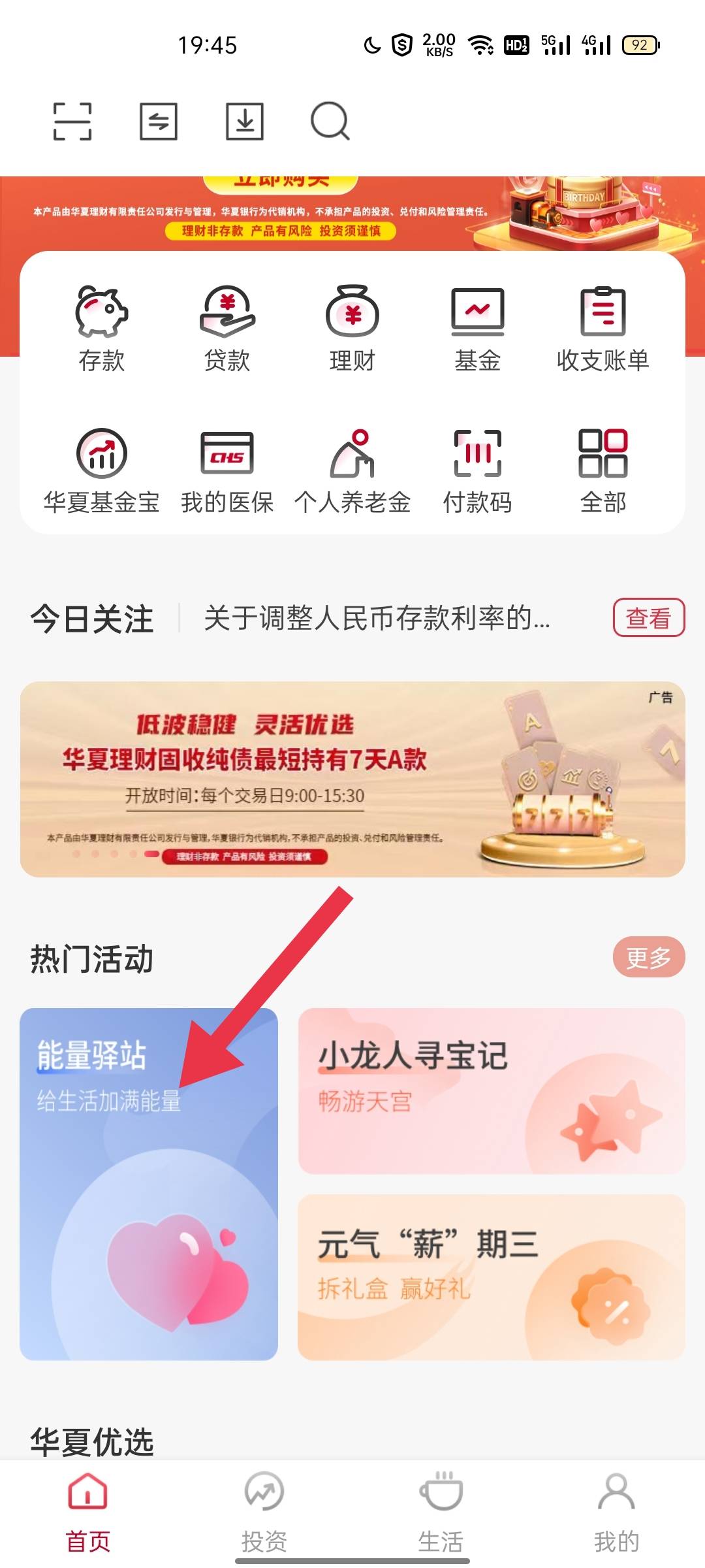 华夏银行,首页,能量驿站,惊喜周五