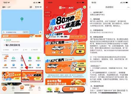 【滴滴免费领肯德基甜筒和圣代】活动一共有3期,当前为第2期!滴滴出行APP->点击横幅进入->累计打车2/4次分别领KFC甜筒/圣代->本期甜筒限量21万份,圣代限量7万份https://bongm.com/fuli.html