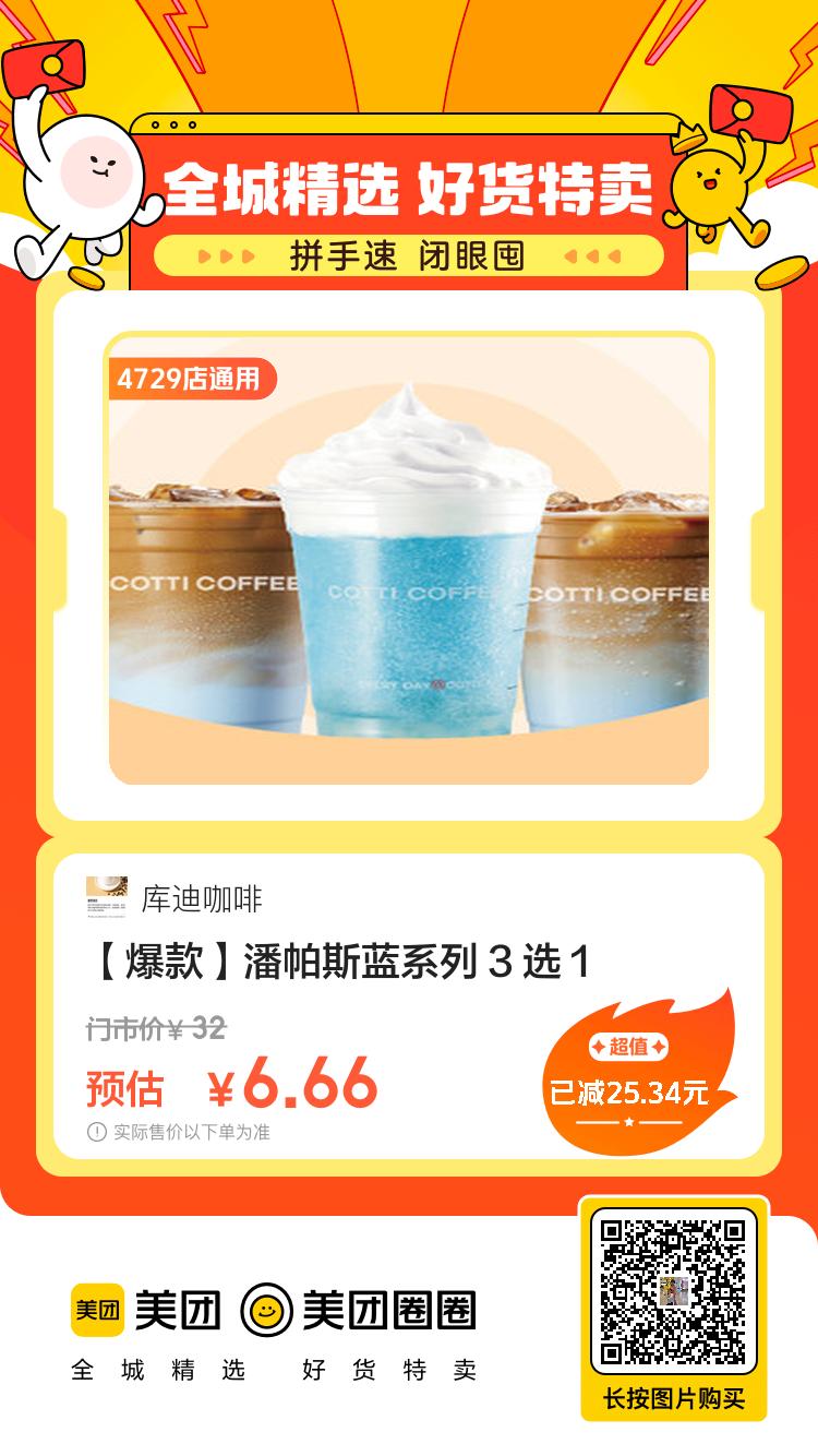 美团到店,6.6,库迪咖啡|[ 爆款 ]潘帕斯蓝系列 3选1