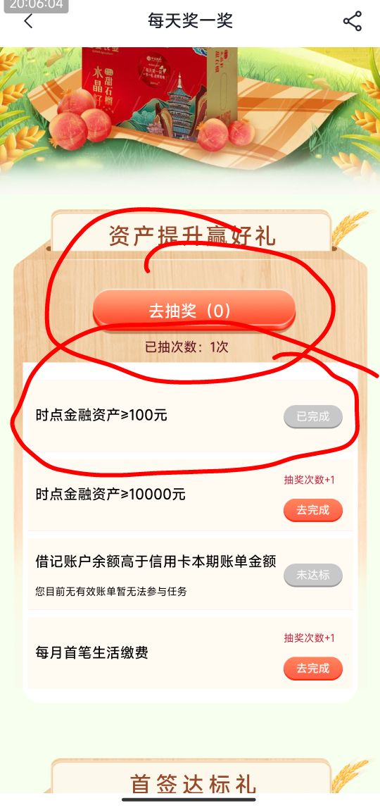 中信,每个月资产达标100, 奖一奖!!!试一下。。。
