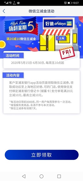 登录浦发银行APP-生活-热门活动 第二个 好德20-10 周五10点开始,还有名额