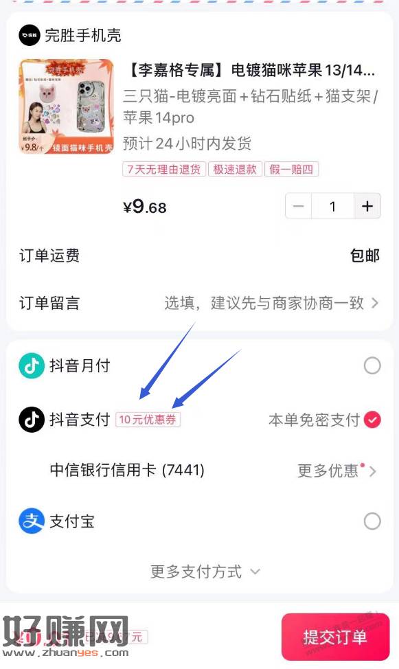 抖音扫图2,拍下付款,支付的时候,选抖音支付