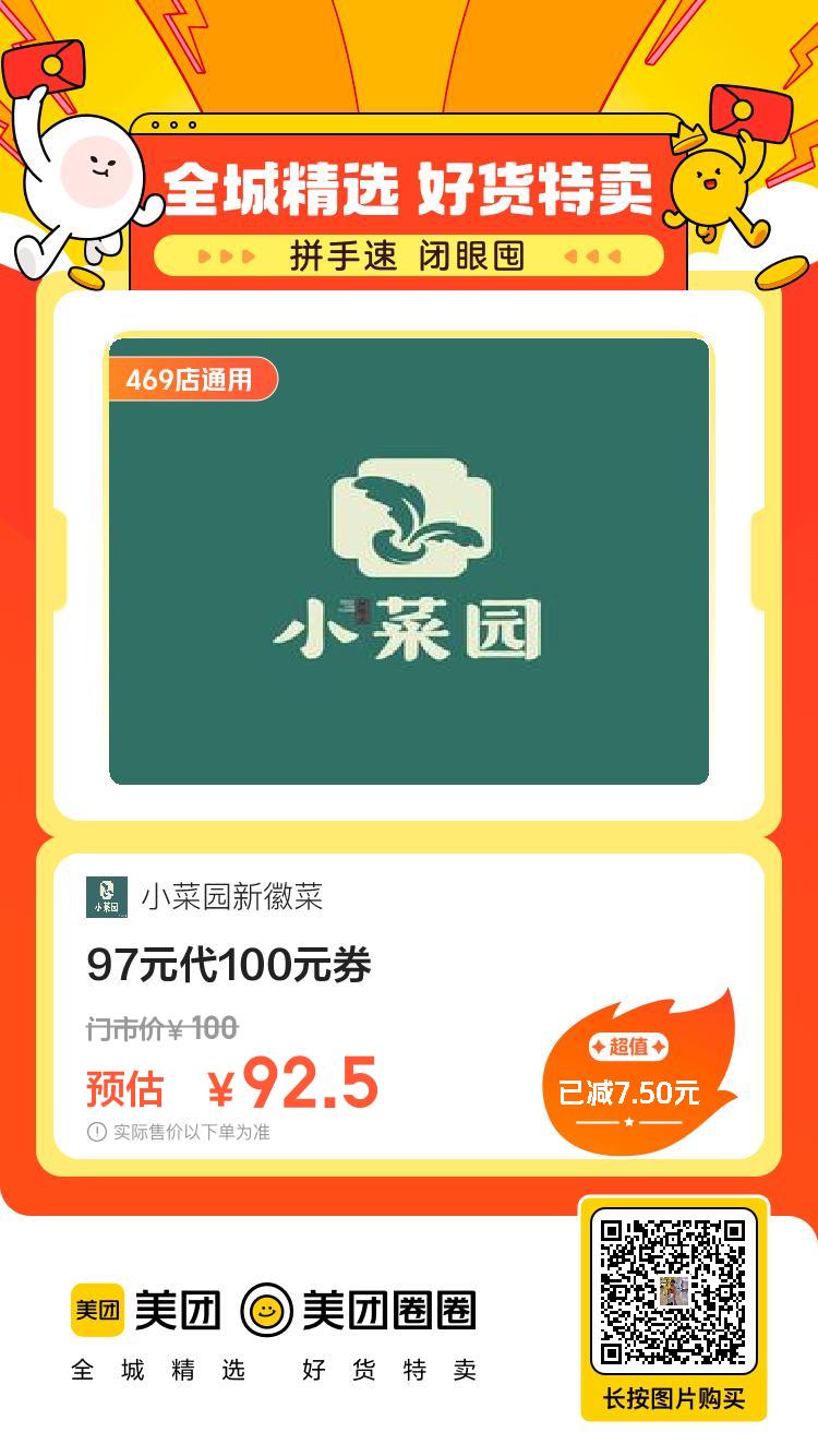 92.5,小菜园新徽菜|100元券