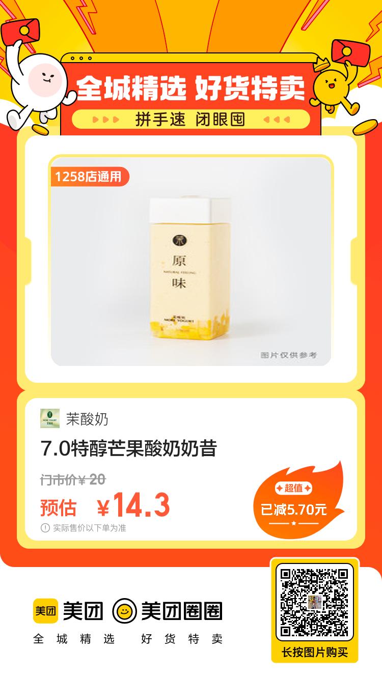 美团到店,14.3,茉酸奶|7.0特醇芒果酸奶奶昔