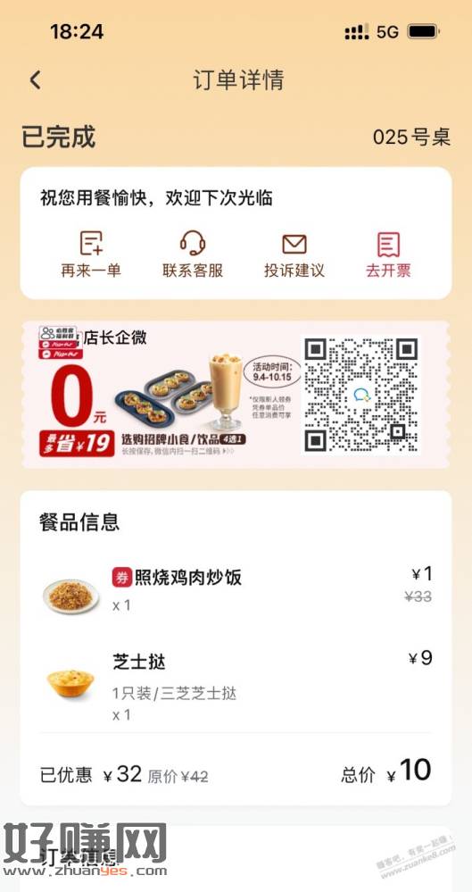 所有账号进去都有,1元主食/饮料券,需消费9元,点芝士挞9元+1元意面/鸡肉饭=10元