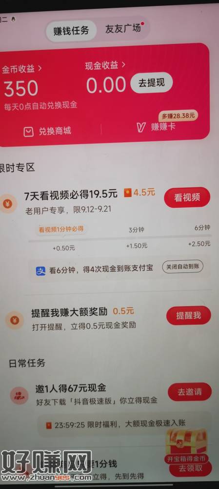 老毛了,抖音极速版应该是一个月以上没登陆过的去看看,七天20毛