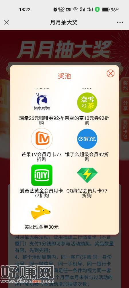 抽奖,限有福建除厦门的卡,0.01支付抽奖