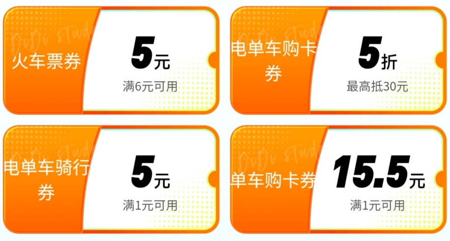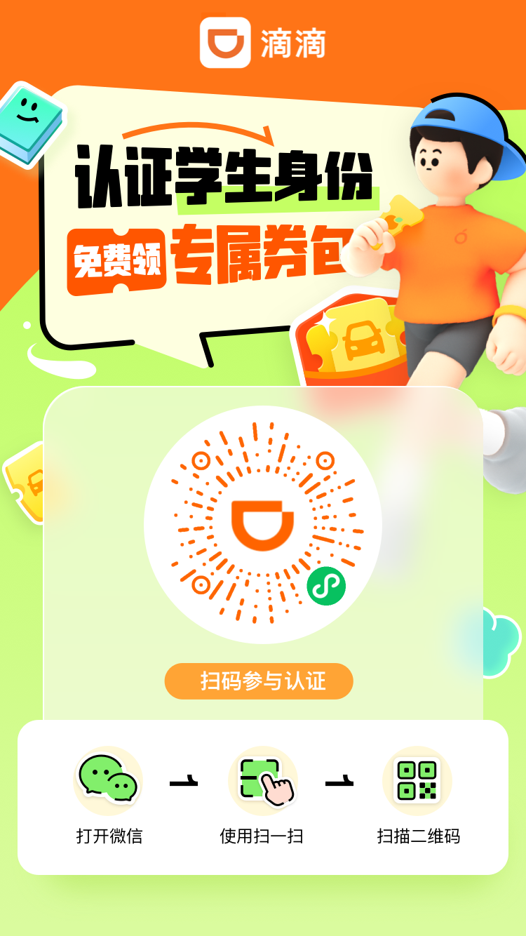 滴滴打车完成学生认证领一堆无门槛券
