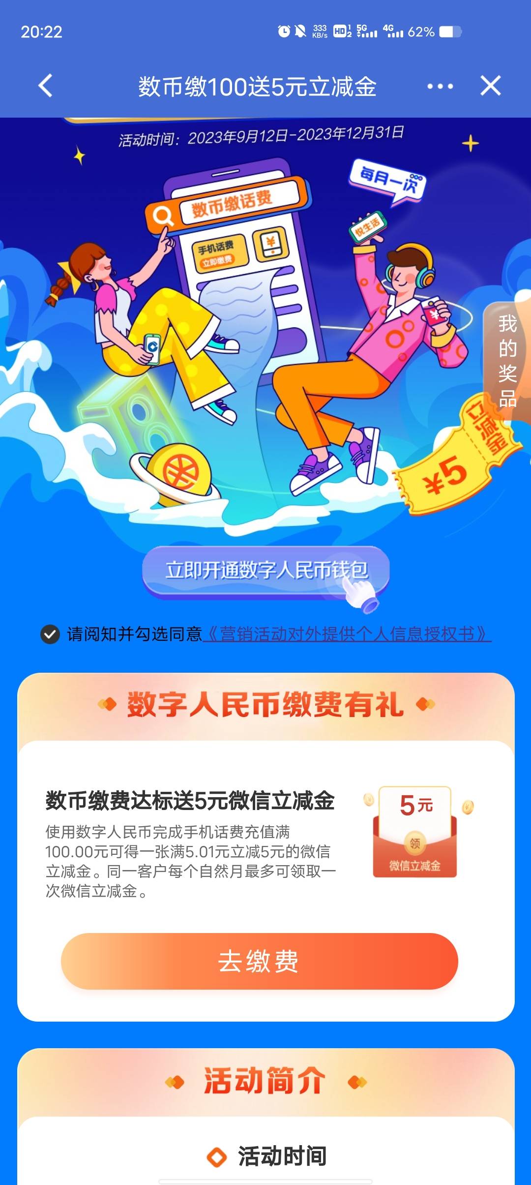 建行数币缴费满100送5立减金,入口在宁波建行推文