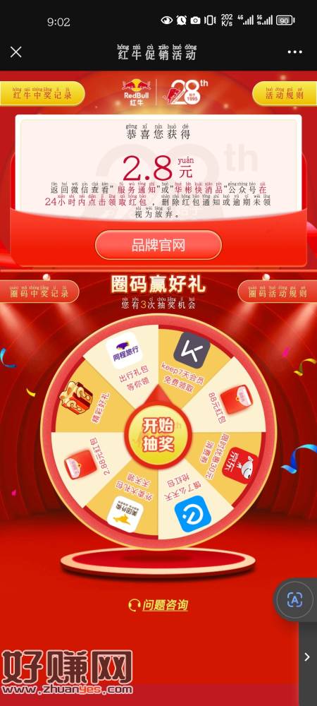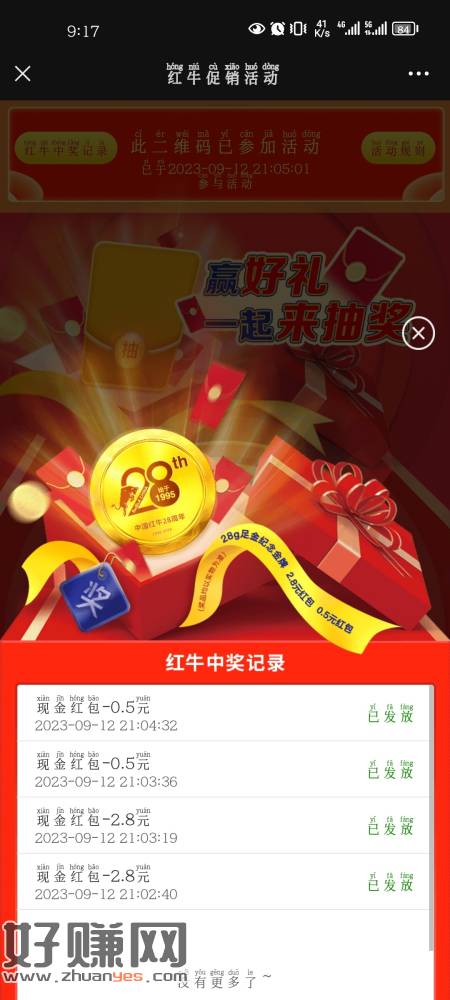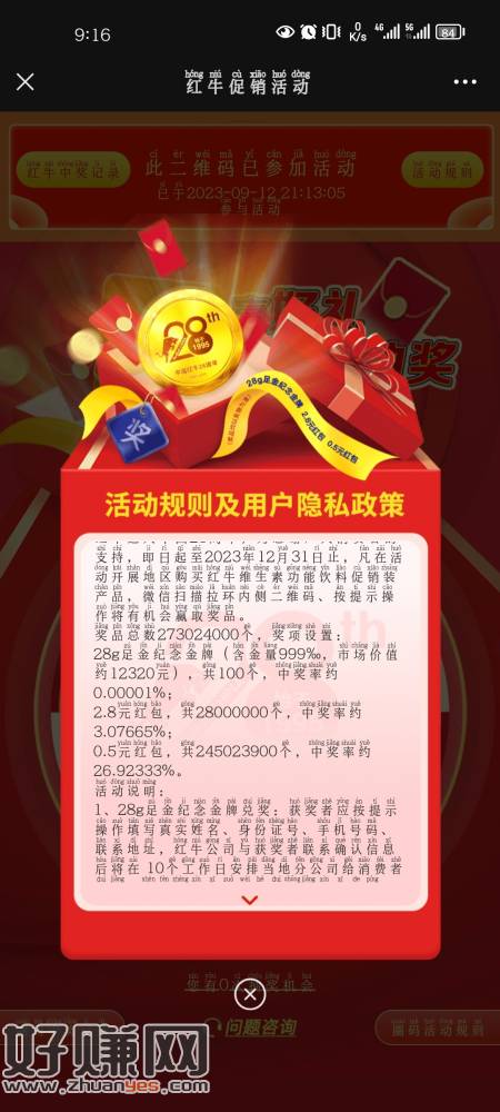 没事玩玩红牛,一个号10张,中不中看运气