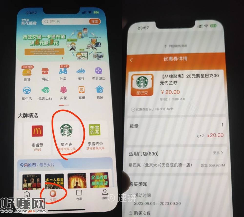 20购星巴克30券外面差不多二十五六收了