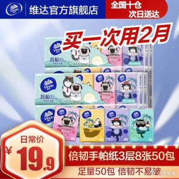 9.9,维达 手帕纸3层8张50包