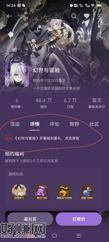 OPPO游戏中心搜索幻世已冒险,看图进去预约抽