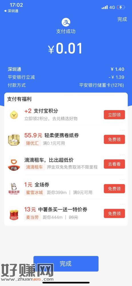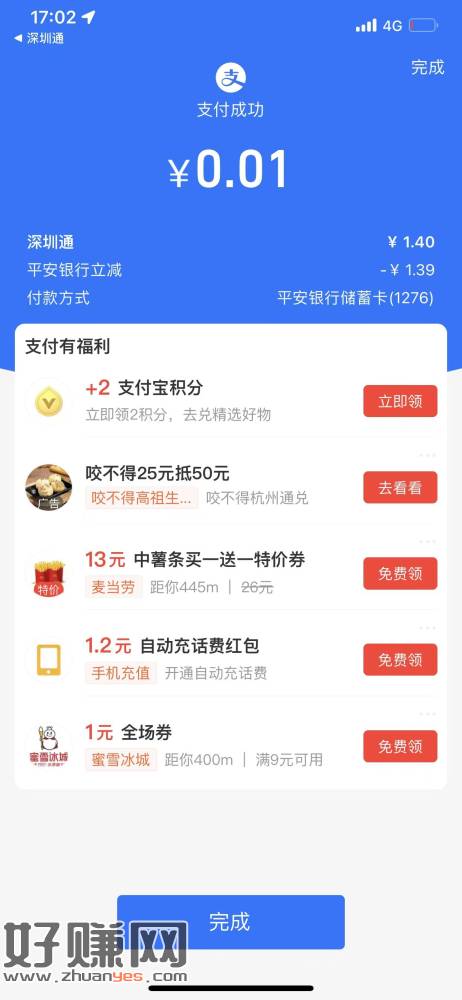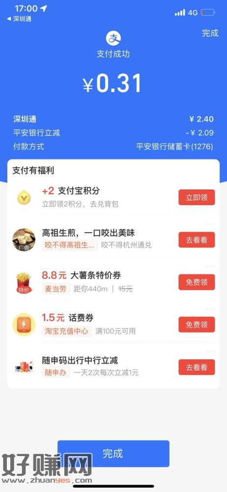 去试试zfb平安yh有3次随机立减 充深圳通t