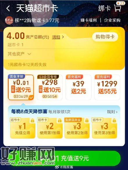 反馈部分号,有充值0.01分期送9猫超卡