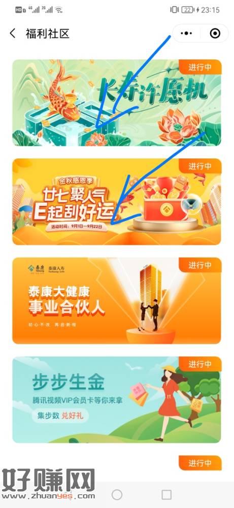 泰康E保微小程序小毛,2个活动一个涨人气需人头助力,一个许愿接金币,接中一个就行