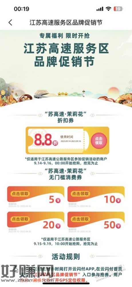 江苏高速服务区ysf无门槛消费券