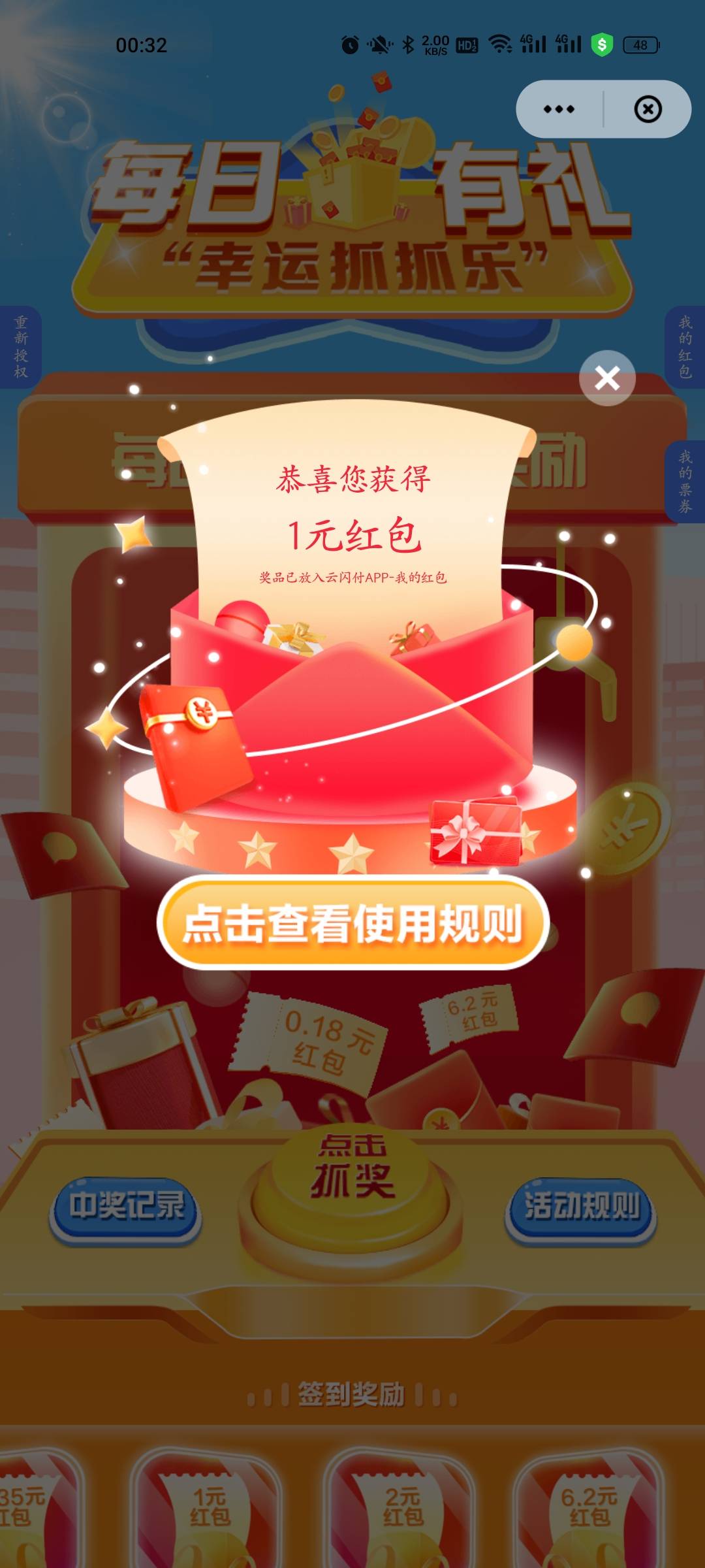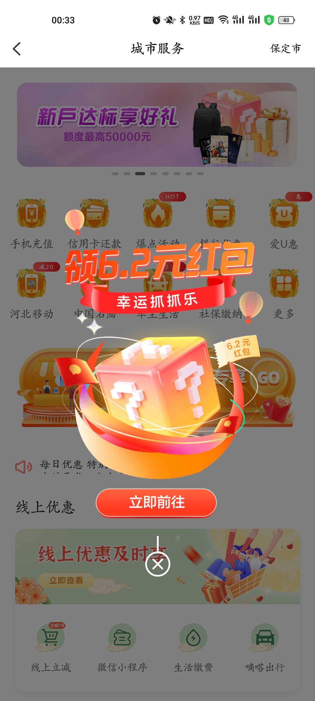 云闪付首页城市服务进去弹窗或中间横幅幸运抓抓乐,好运去