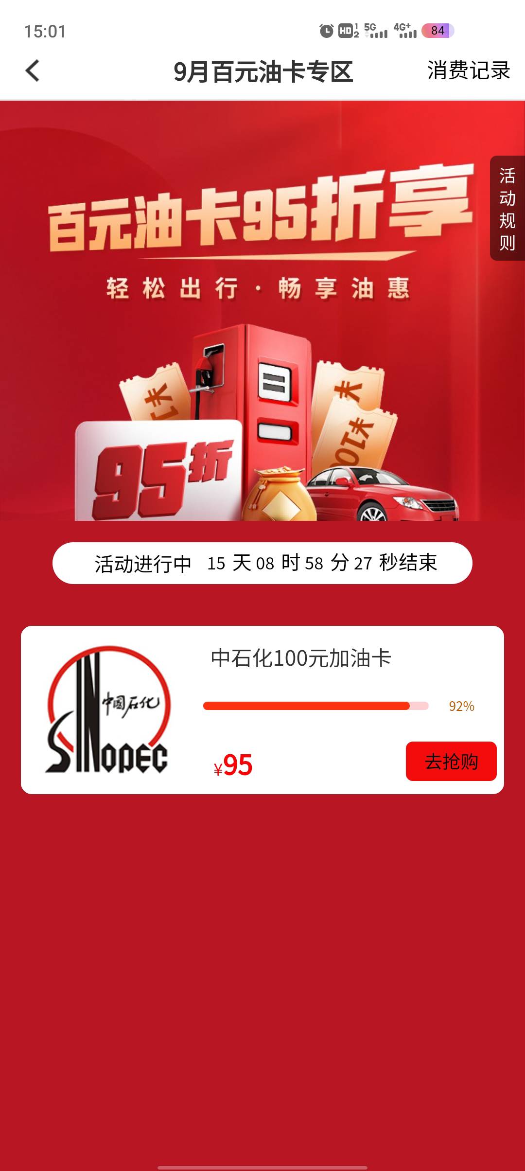 南京银行-热门活动-鑫动福利月 95买100中石化油卡 --蜜蜂秒出 润4.6(还有速度)