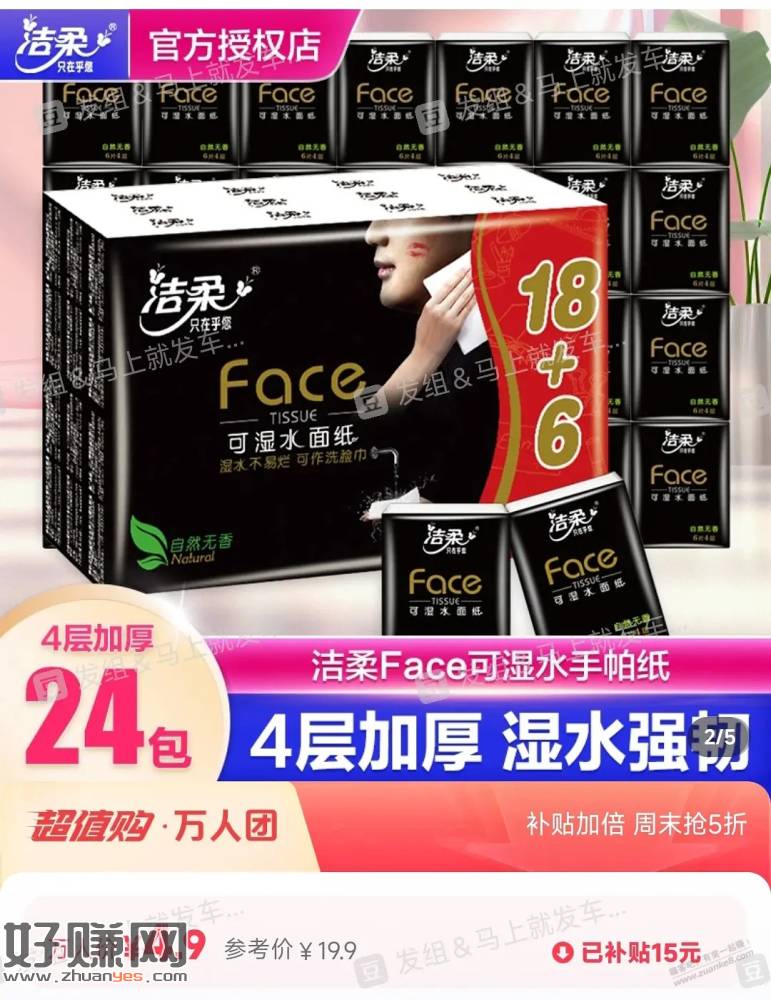 dy洁柔手帕纸24包 4.9包邮