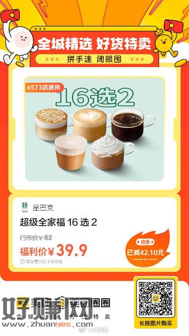39.9,星巴克|超级全家福 16 选 2,经典款比较多,按需