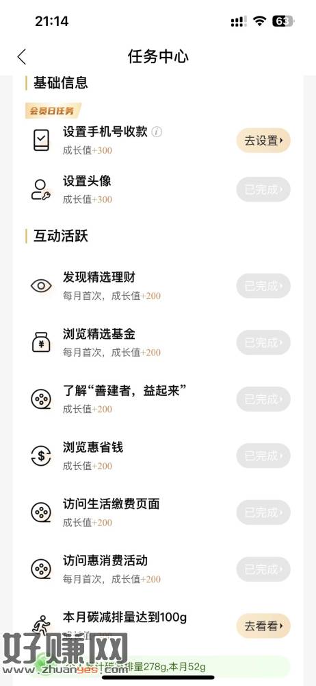 建行APP-我的-会员中心-下拉把浏览任务和财富体验做了升到