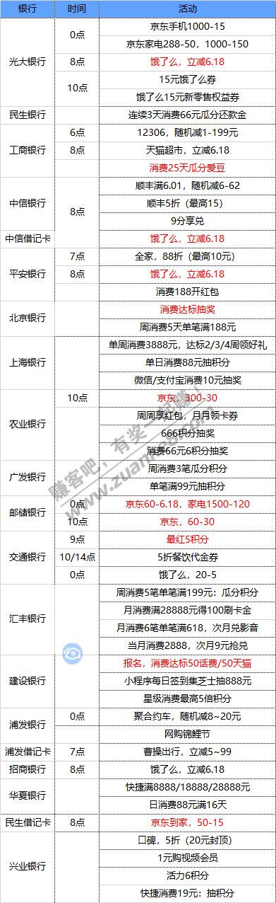 6月13号周六 各大银行活动优惠