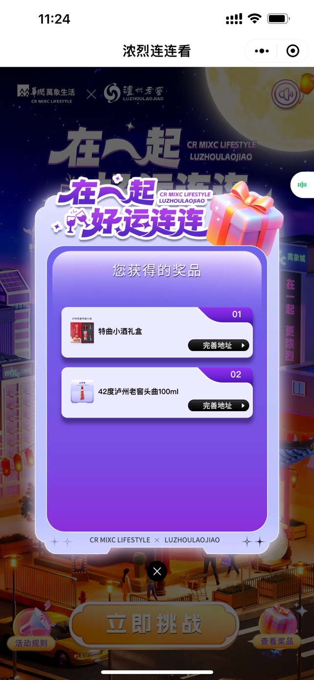 泸州老窖不用玩直接抽 点开始游戏-退出-进链接等一会直接抽 #小程序