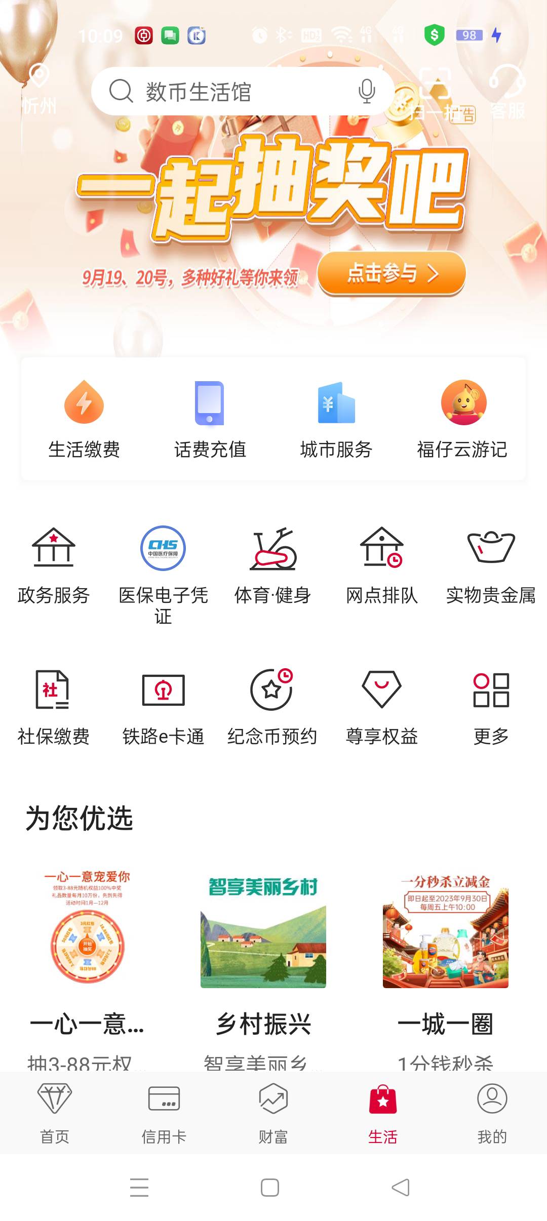 中行,山西。生活页面,最上方抽奖