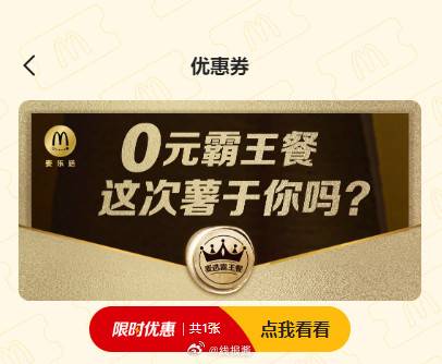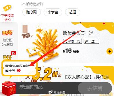 麦当劳麦乐送,购物车左下角抽霸王餐