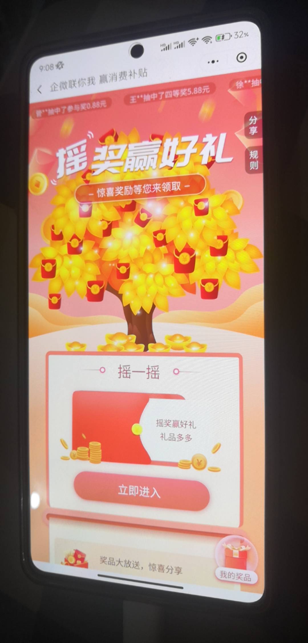 小程序德州关注企业微信有礼报名,直接抽我1.88