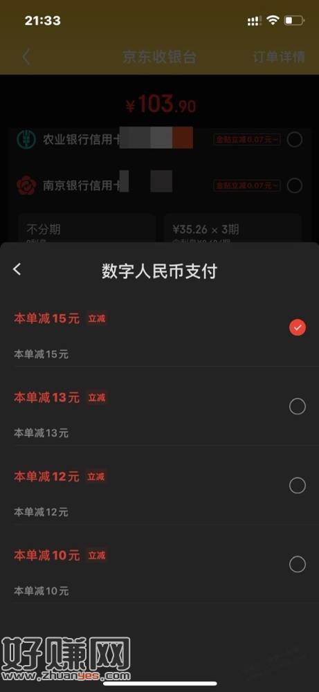 京东数字人民币付款有立减1-15元支付优惠 很多一长串优惠