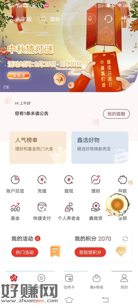 南京银行首页猜灯谜,随便逛逛集月饼抽奖,活动今天截止。