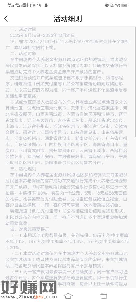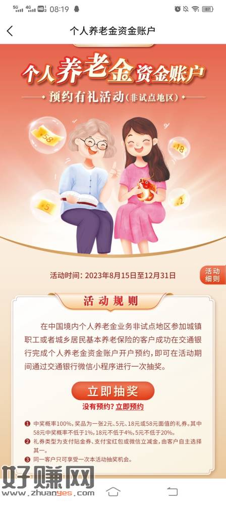 交行养老金预约,非试点地区也可以预约,不用开户,预约后可抽奖