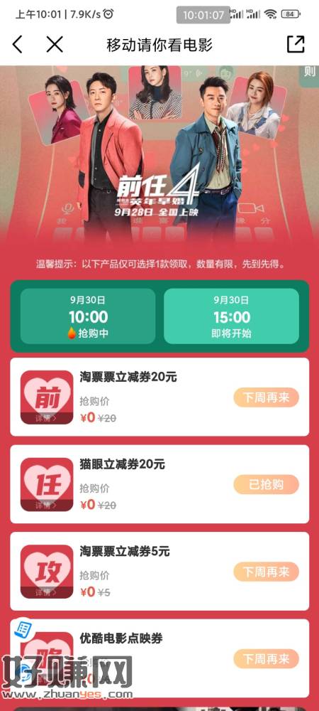 移动铂金会员周六看电影选猫眼可以卖掉