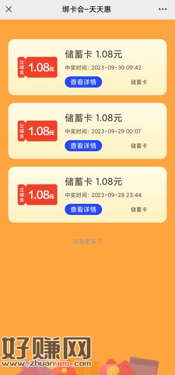 前两天有老哥发的建行月月刷 里边的天天惠我天天都抽出1.08