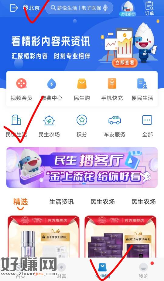 民生银行,生活圈切北京,民悦生活,步骤看图