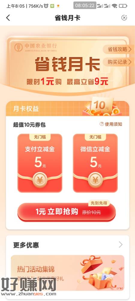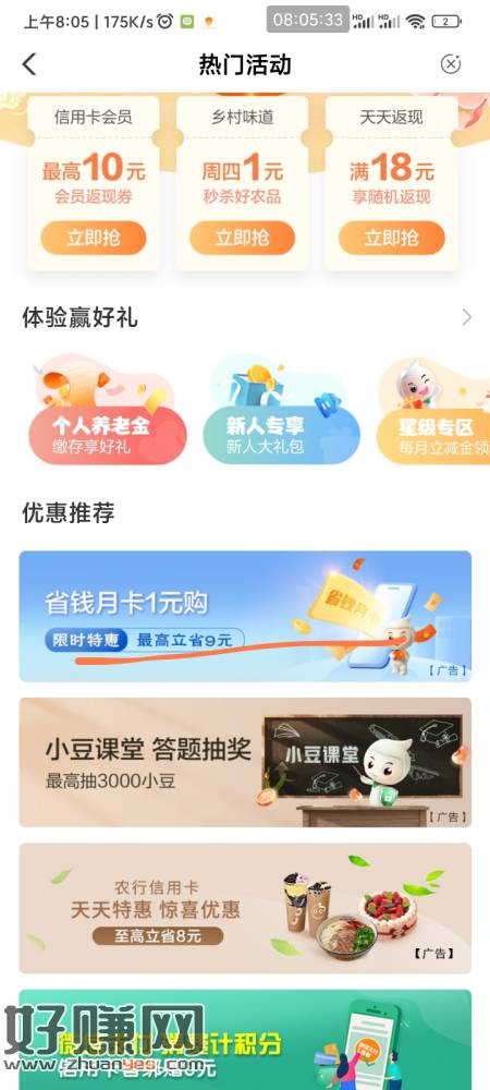 冲 农行省钱月卡刷新了 首页热门活动下滑