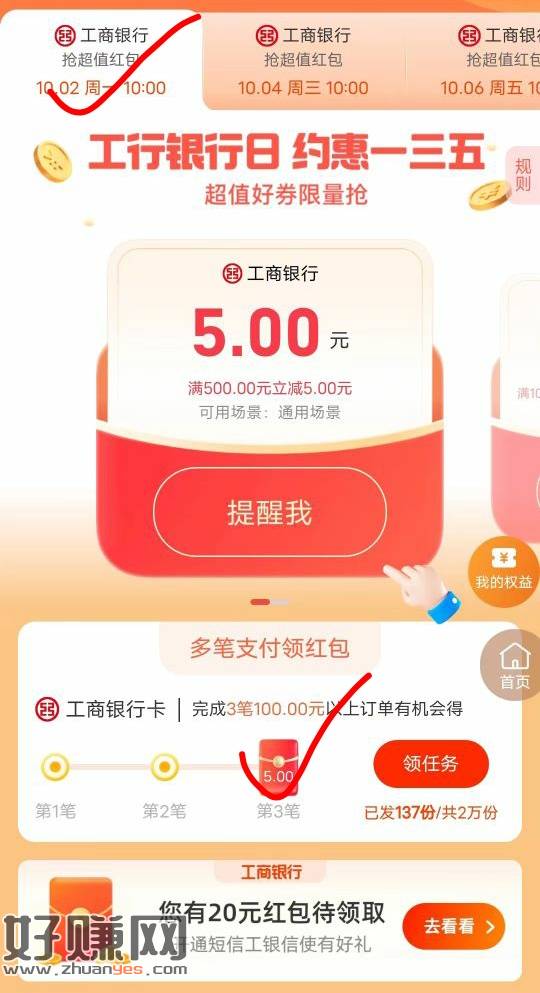 浙江工行卡自测,zfb搜银行卡优惠,刷3笔领5,明天抢5