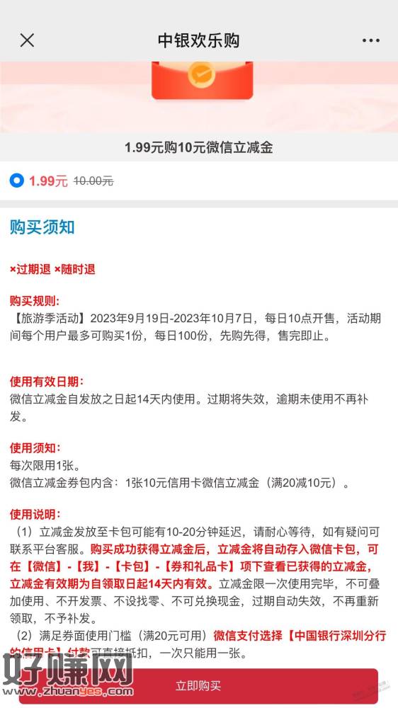 ……深圳 中行xing/用卡 1.99买10立减金 1次