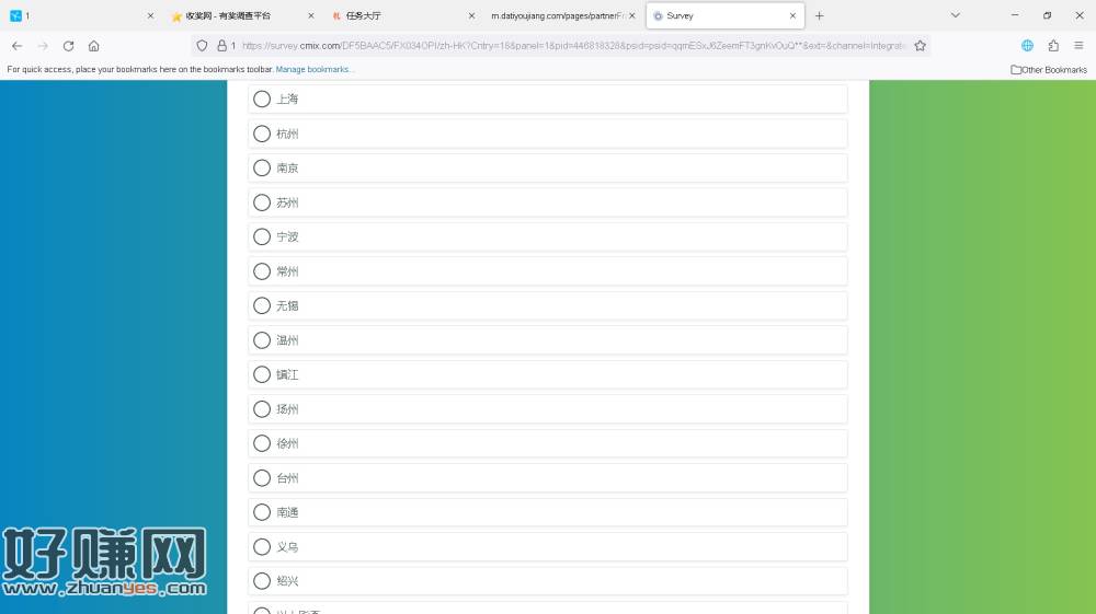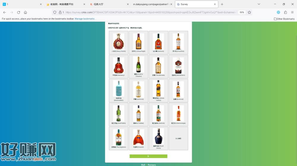 有礼s2560男,30-40左右的烈酒与威士忌酒的调查,没问哪个品牌,网站比较卡,不是很推荐做,然后地区和问的品牌看图,我选的江油市,不知道还有没有配额了,上一条帖子的比较简单可以去看看