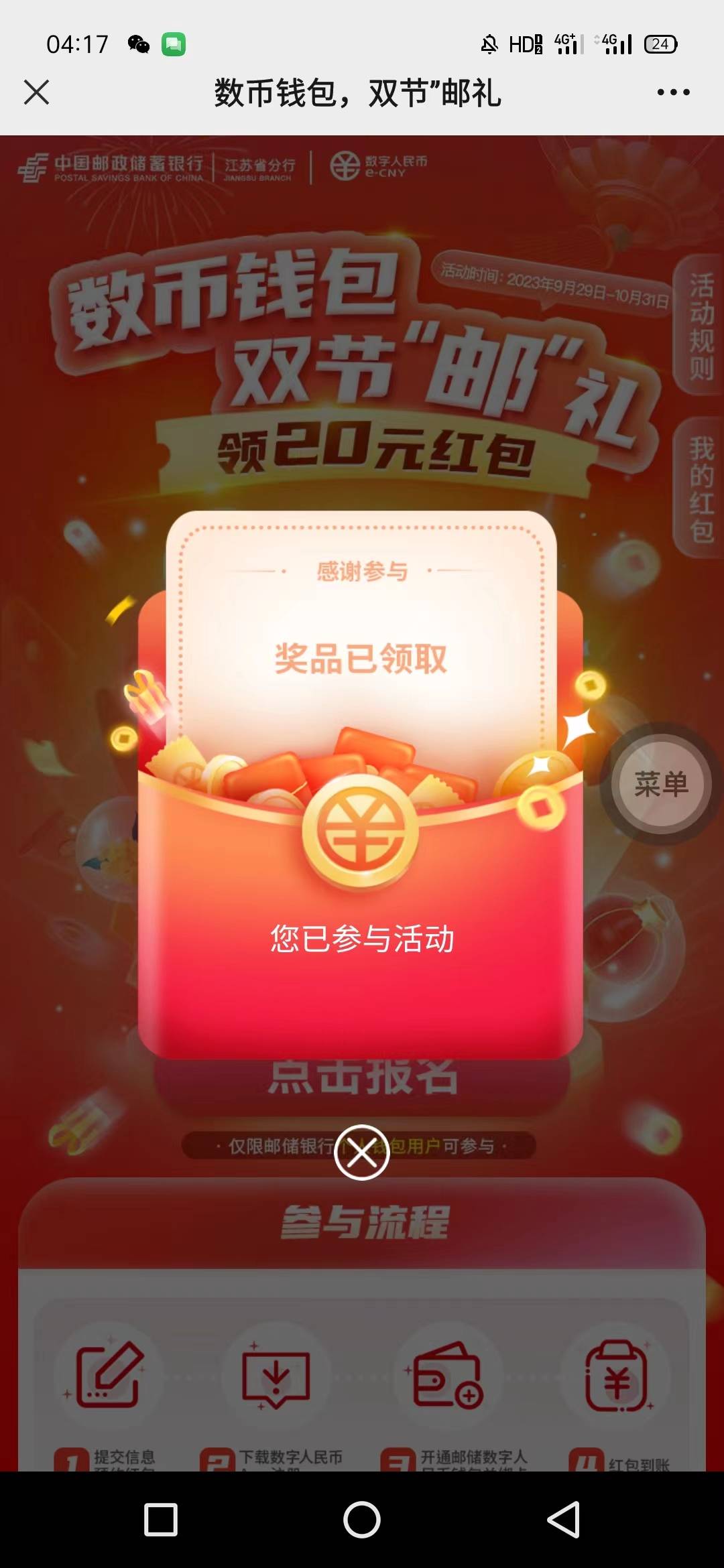 今日首发江苏邮储公众号推文,数币钱包绑卡新客户20数币,定位江苏,老哥速度冲废,我刚才领了4个 认实名