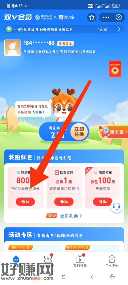 不常用号可领6+5元红包,免费开通月卡会员还可领无门槛7元红包