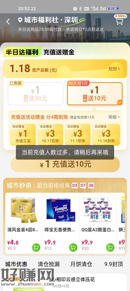 天猫超市改深圳1充10,我4—2,会破图二的评论区发一下