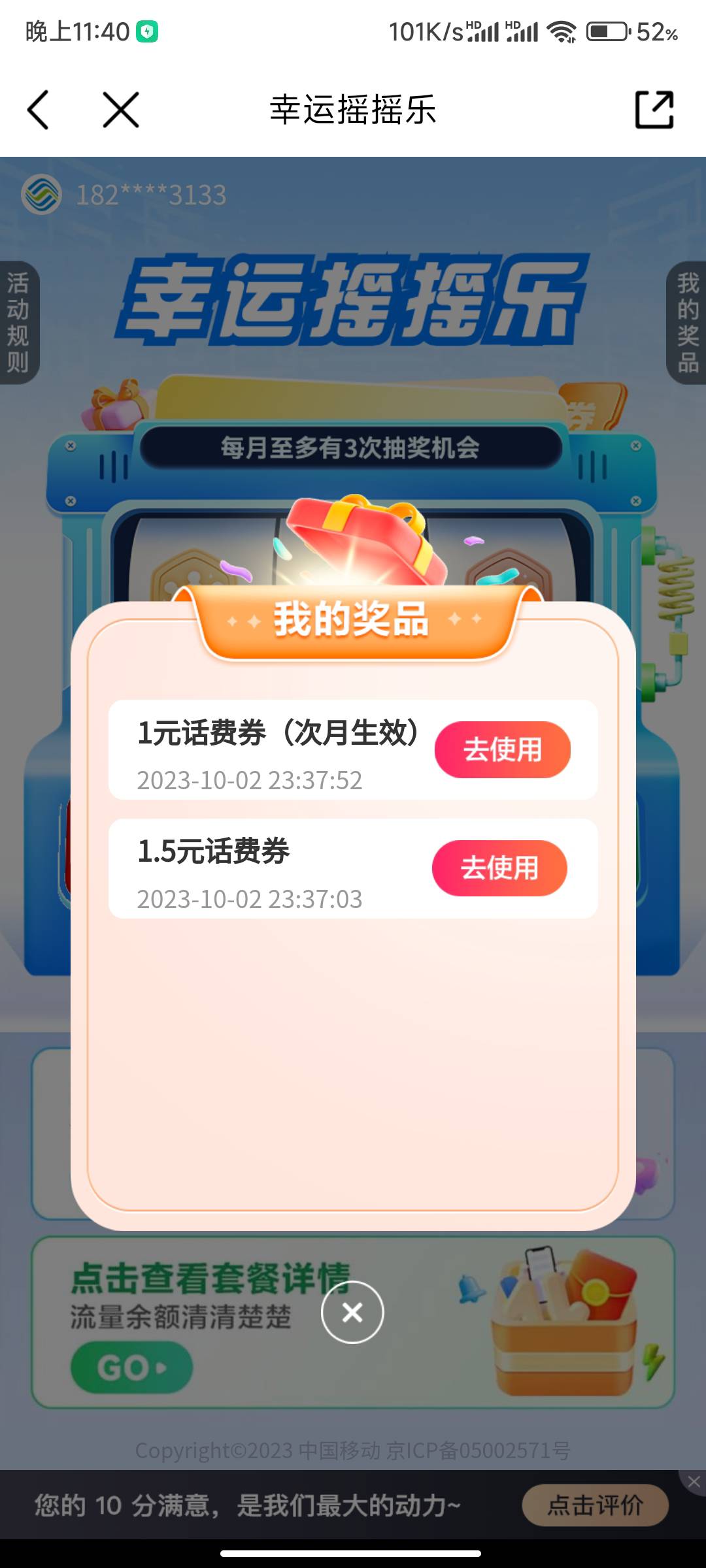 中国移动 抽话费了 一毛两毛都是爱 好像河北用户才可以 三次机会 求赞求评论 求升级