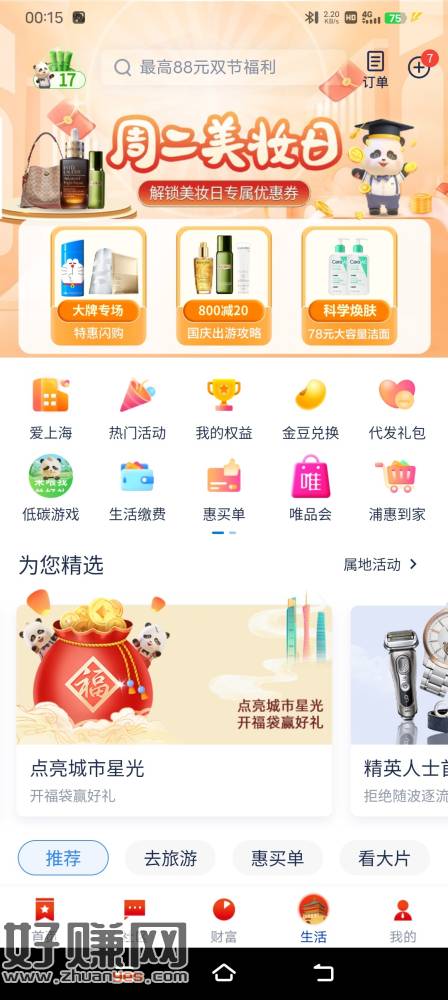 之前浦发银行城市切换北京活动抽奖刚中5E卡。
